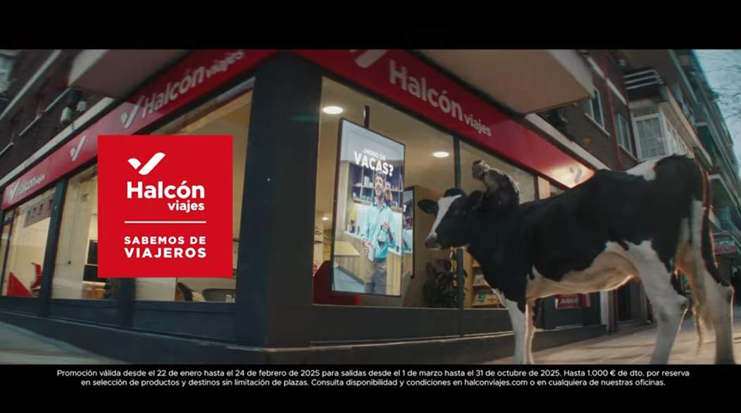 A més, en el mateix anunci, així com en l’anterior de Halcón Viajes, també apareix una vaca propietat de l’empresa de lloguer d’animals per a cinema i publicitat, Fauna y Acción… un altre animal que no pinta res en un plató de televisió!