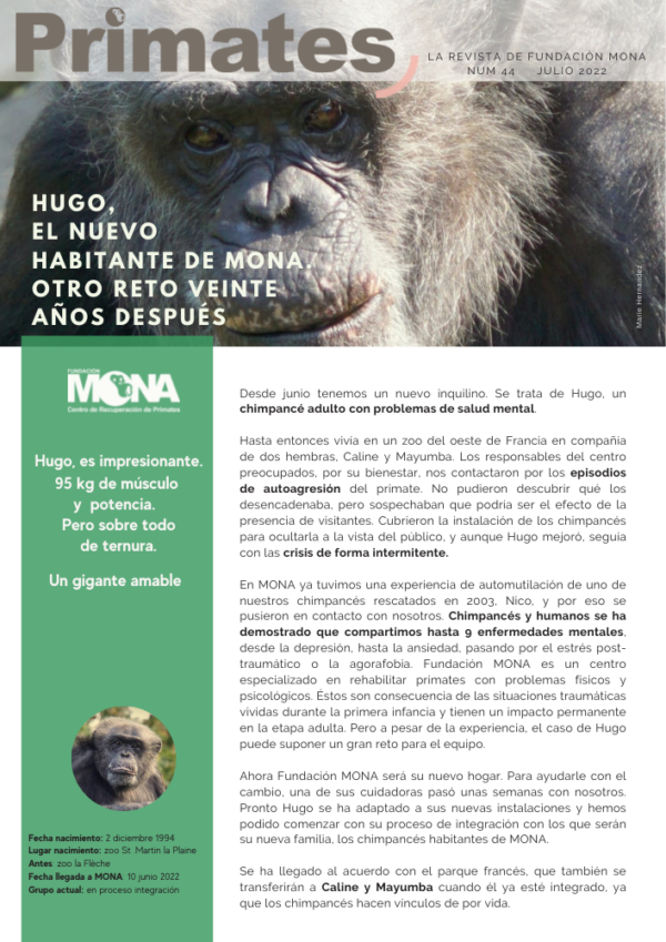 Ya puedes leer la revista de los socios/as y padrinos/as de MONA, Primates Nº 44