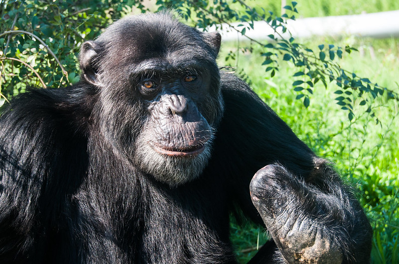 Impresiona a todo aquél que la conoce. Es una chimpancé muy grande, más incluso que muchos machos, pero con una cara muy dulce.