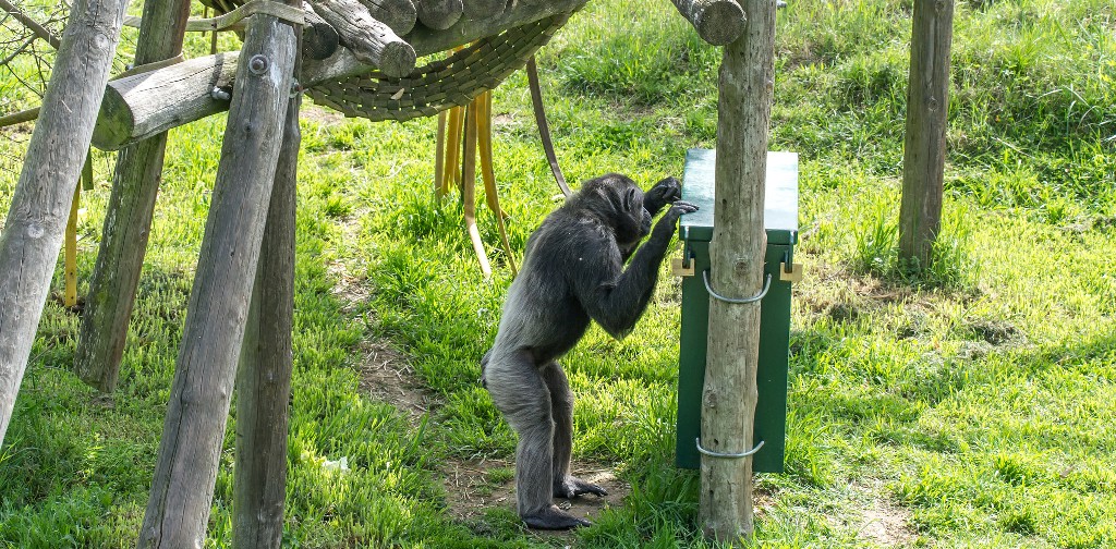 La Coco és una ximpanzé molt tranquil·la i de les més sociables. Li agrada estar en companyia dels seus amics, ja sigui gaudint d’una relaxant sessió de grooming o buscant un company de joc. Però també gaudeix del seu temps sola, que passa entretinguda amb algun joc.