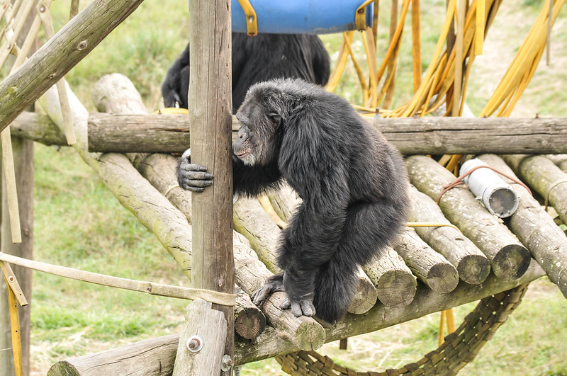 Segueix sent un ximpanzé nerviós, que se sobreexcita fàcilment, però ha millorat molt des que va arribar. Vam començar amb les seves associacions amb l’antic grup dels Mascles, però sense èxit, perquè tant en Marco com en Bongo el van rebutjar. Així que des del 2013 és part integrant del grup dels Bilinga, on gaudeix de la vida en companyia dels seus congèneres.